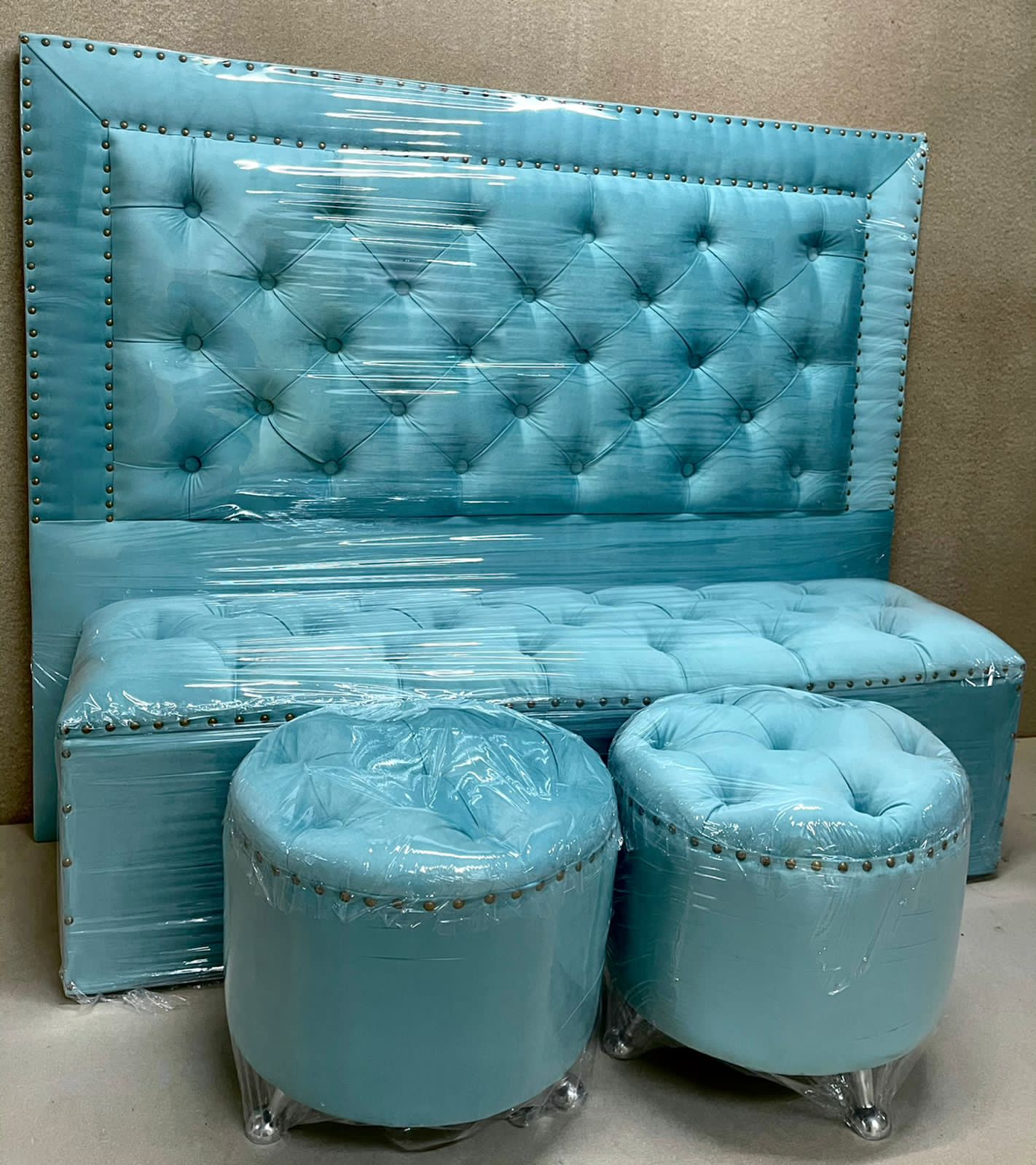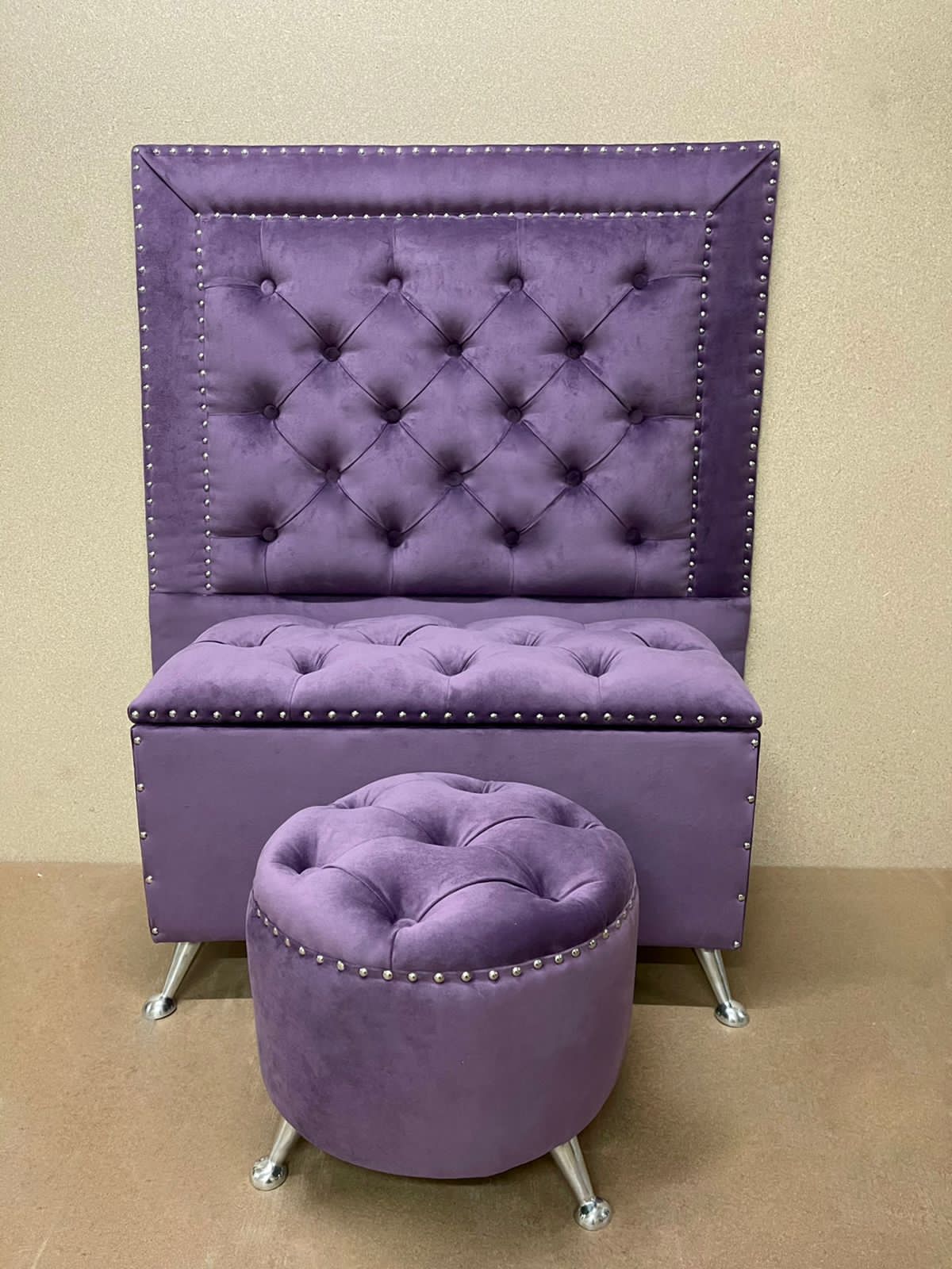 Puff: Decora tus ambientes! Con una fila de tachas niqueladas, óxido o doradas.